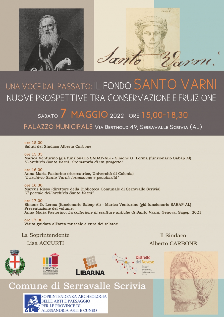 L’evento, organizzato dal Comune di Serravalle Scrivia con la Soprintendenza Archeologia Belle Arti e Paesaggio per le province di Alessandria Asti e Cuneo, inaugura il sito santovarni.it costituendo una tappa fondamentale del progetto di valorizzazione del cosiddetto 'legato Santo Varni', acquisito al patrimonio inalienabile del Comune di Serravalle Scrivia nel 2007.