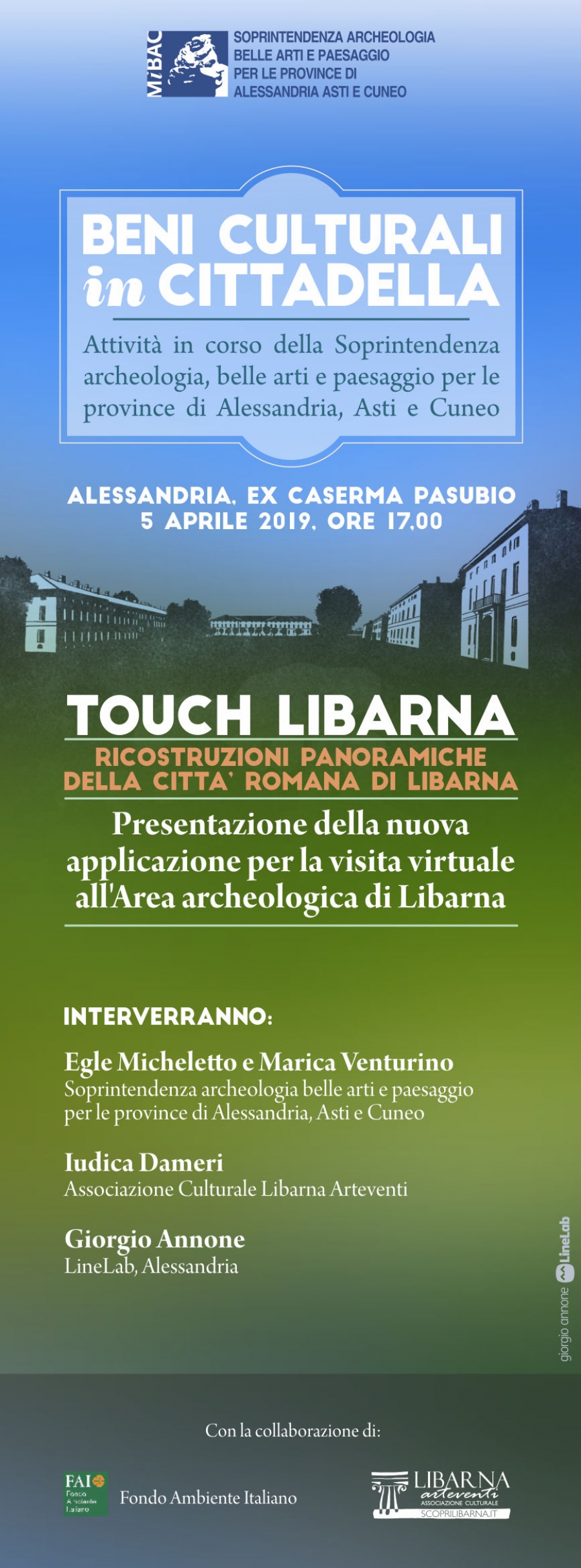 La nuova applicazione per la visita virtuale all’Area archeologica di Libarna è stata realizzata nell’ambito del progetto “Da Libarna al Forte di Gavi. Presidi a controllo di un territorio tra la pianura e il mare”, presentato dalla allora Soprintendenza Archeologia del Piemonte (Libarna) e dal Polo Museale del Piemonte (Forte di Gavi) nell’ambito del bando “MuSST. Musei e sviluppo dei sistemi territoriali” (2016-2018) della Direzione Generale Musei del MiBAC, in collaborazione con enti e associazioni culturali del territorio. L’obiettivo del progetto è stato quello di accrescere le modalità di fruizione dell’Area archeologica di Libarna ricorrendo anche all'edutainment, dopo avere compreso le esigenze del pubblico sulla fruizione dei beni culturali all’interno di un più ampio contesto territoriale. La nuova applicazione “Libarna - Tour virtuale nella città romana”, sviluppata da LineLab di Alessandria, permette di entrare virtualmente nel sito archeologico immergendosi in splendidi panorami a 360°, arricchiti da ricostruzioni virtuali che si alternano alle viste reali per ricreare lo spettacolo scenografico degli edifici romani di un tempo. L’utente inoltre avrà a disposizione ulteriori informazioni e curiosità per apprendere la storia che ha caratterizzato la città tra il I secolo a.C. e il II secolo d.C. L’applicazione, disponibile on-line e compatibile con tutti i browser in commercio da Android a iOS, potrà raggiungere un pubblico più ampio, consentendo così di guidarlo in un’esperienza immersiva anche se lontani dal sito, sia per finalità didattiche sia a favore di persone svantaggiate e/o con mobilità limitata. L’evento è organizzato in collaborazione con l’Associazione Libarna Arteventi e il FAI Fondo Ambiente Italiano, sezione di Alessandria.