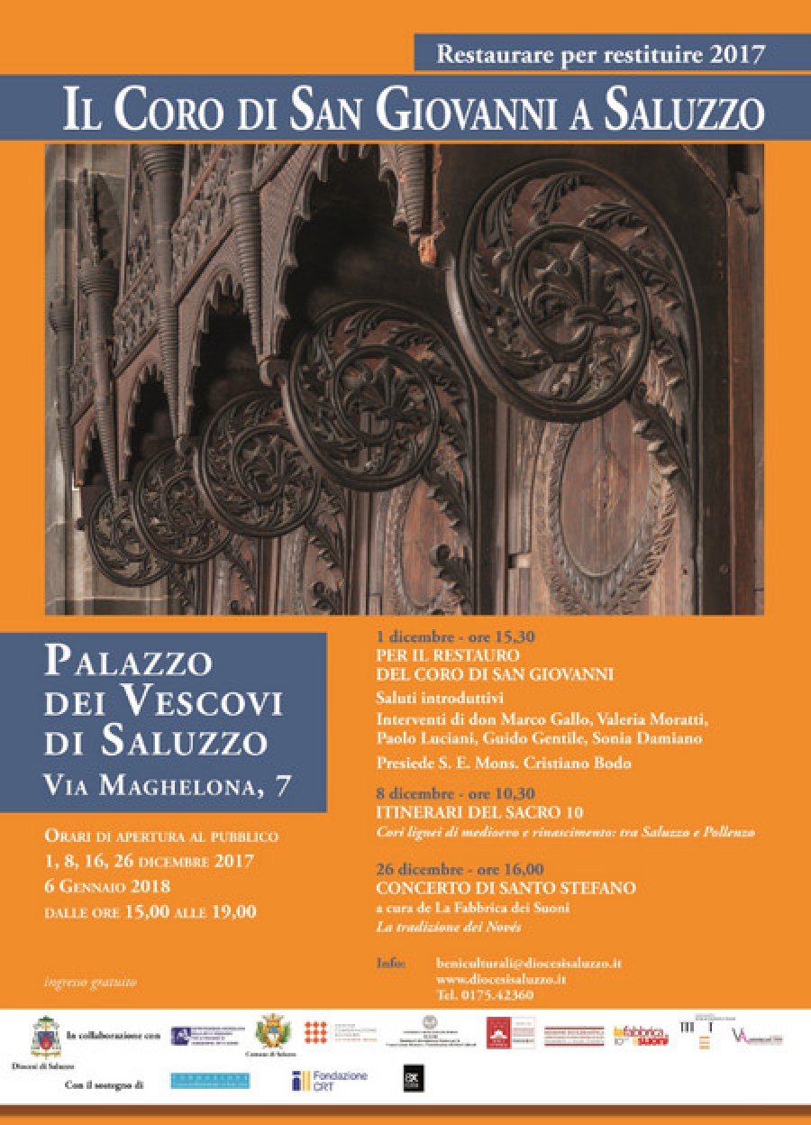 Venerdì 1 dicembre 2017 alle ore 15.30 il Museo Diocesano di Saluzzo in collaborazione con la Soprintendenza Archeologia Belle Arti e Paesaggio per le Province di Alessandria Asti e Cuneo presenta il restauro degli stalli e del badalone quattrocenteschi giunti nel XIX secolo dalla Precettoria antoniana di Sant'Antonio di Ranverso in San Giovanni a Saluzzo, per arredare la cappella marchionale, importante recupero condotto dal Centro Conservazione Restauro La Venaria Reale.